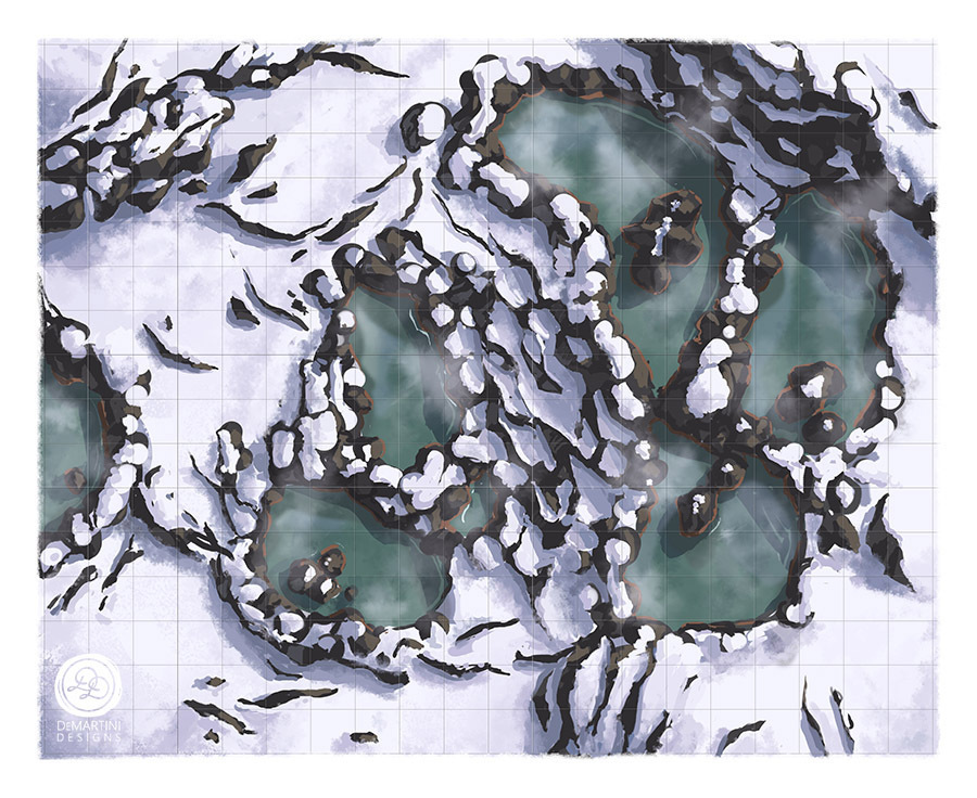 This Medium mountain map has lots of elevation and difficult terrain. Pick if this encounter takes place during the day or bio-luminescent night.